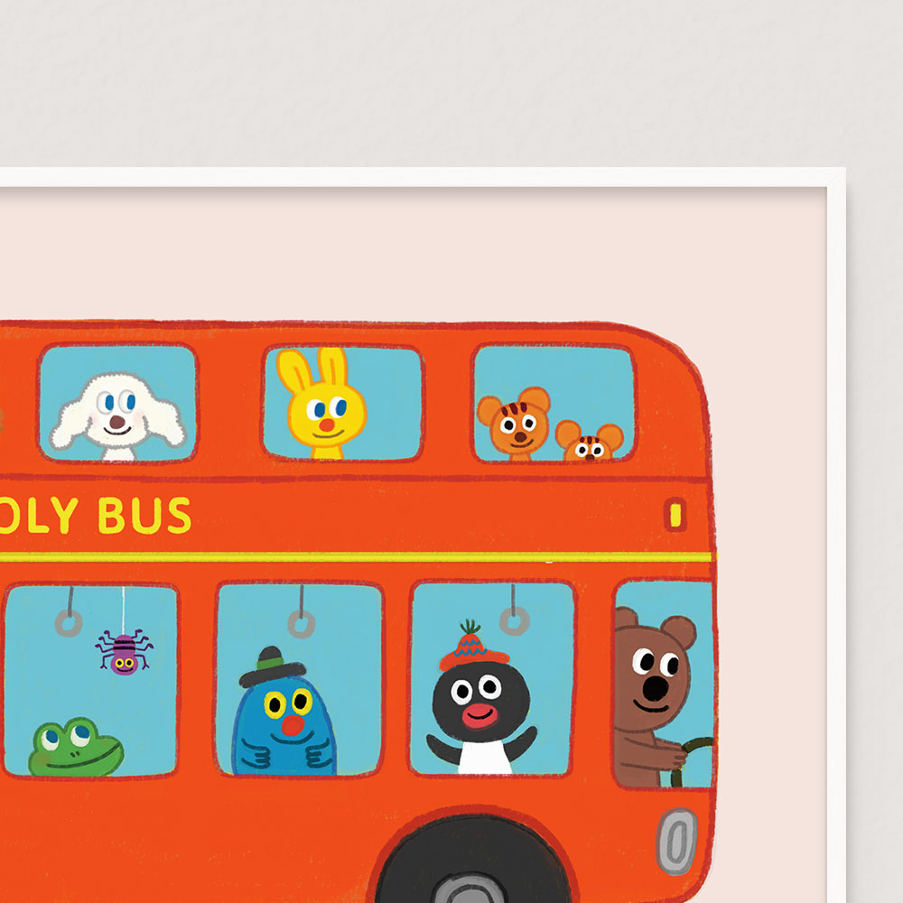 옹기종기 빨간 버스에 타고 어디론가 떠나는 굴리굴리 친구들입니다.