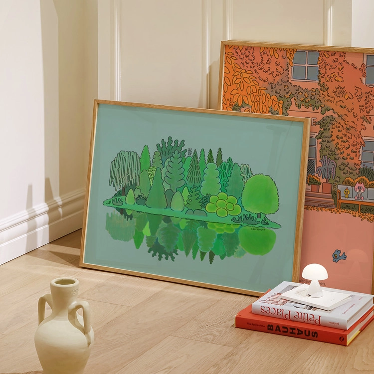 호수에 비친 숲의 모습은 마치 또 하나의 세상을 보여주는 듯한 신비로운 분위기를 자아내며, 공간을 더욱 깊이 있고 감각적으로 만들어 줍니다.