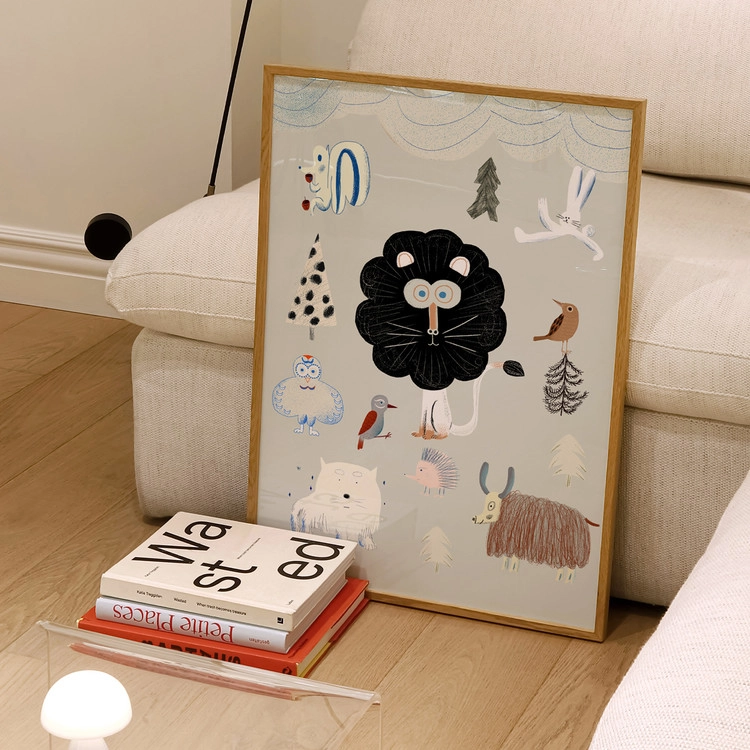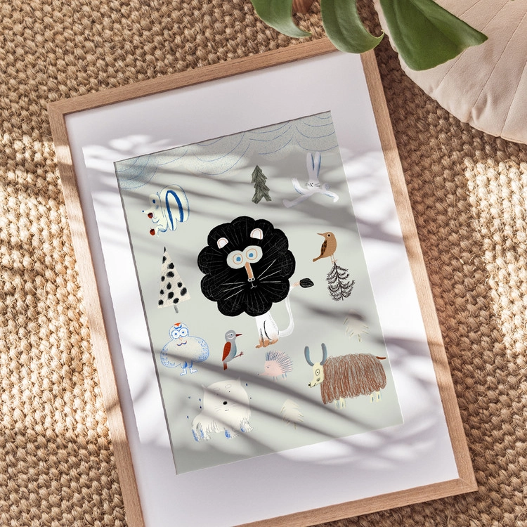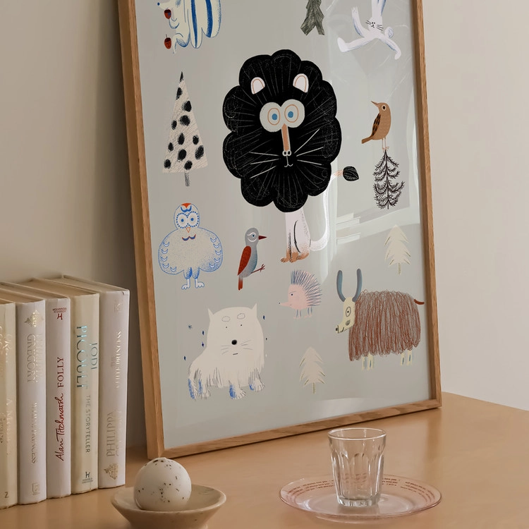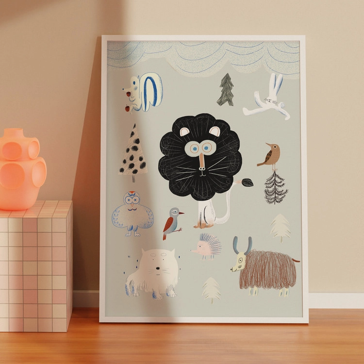 이 특별한 포스터는 개성 넘치는 동물들이 가득한 신비로운 숲을 그려냈습니다.