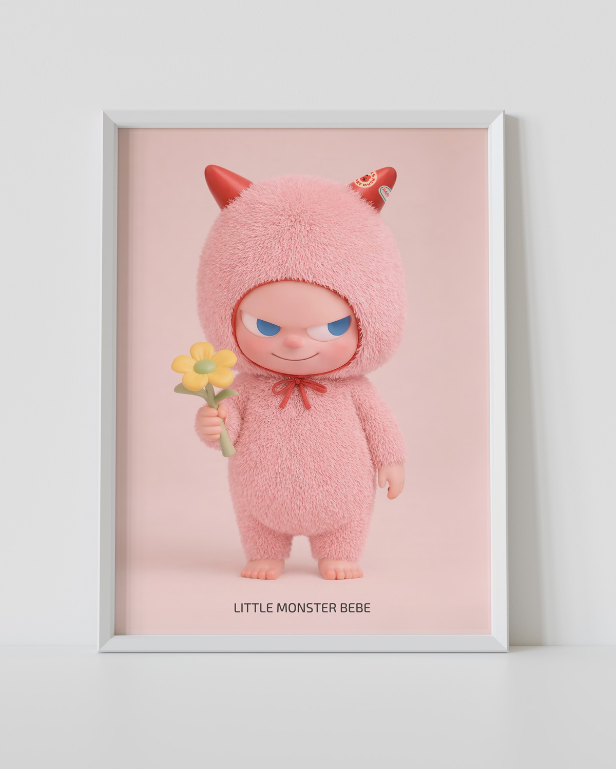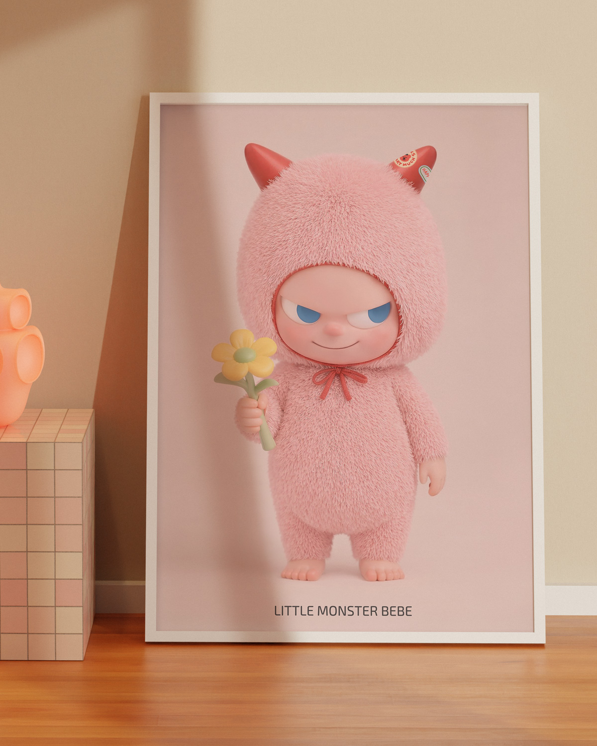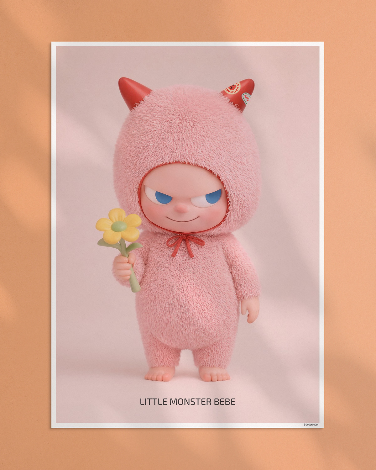 부드러운 질감의 팬더 코스튬을 입은 몬스터 베베의 장난스러운 표정이 시선을 끄는 포스터입니다.