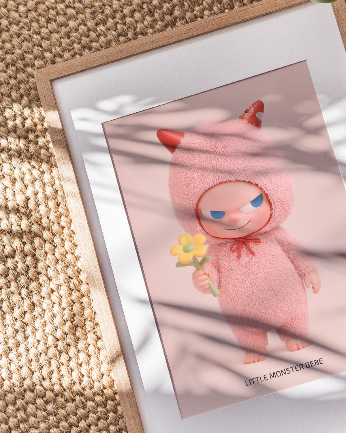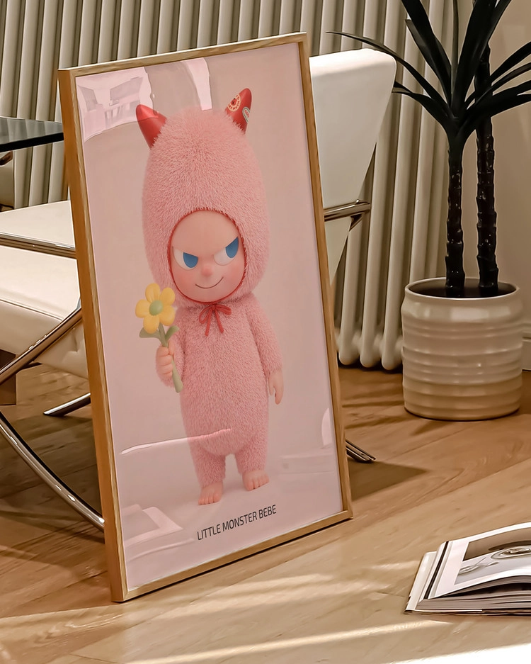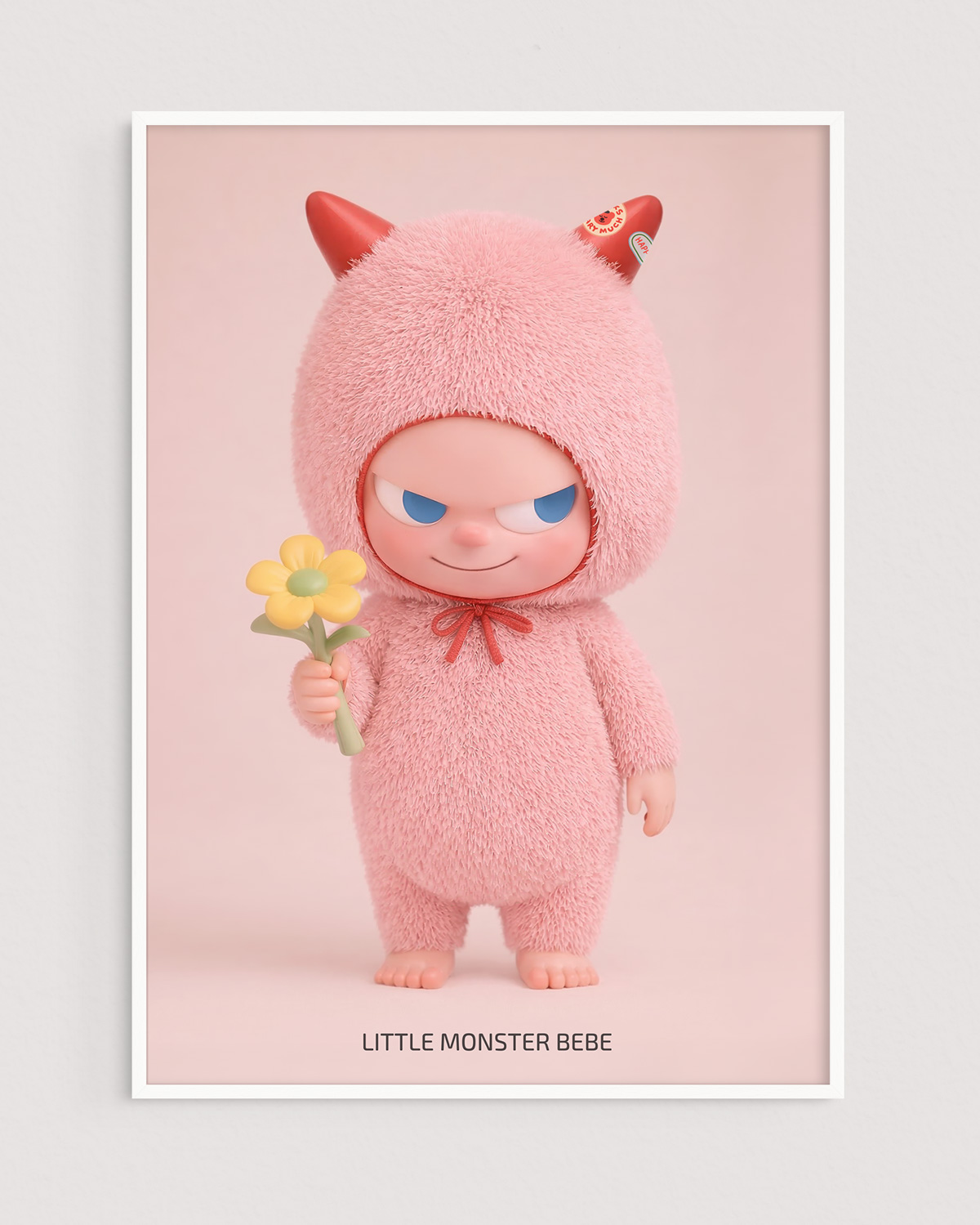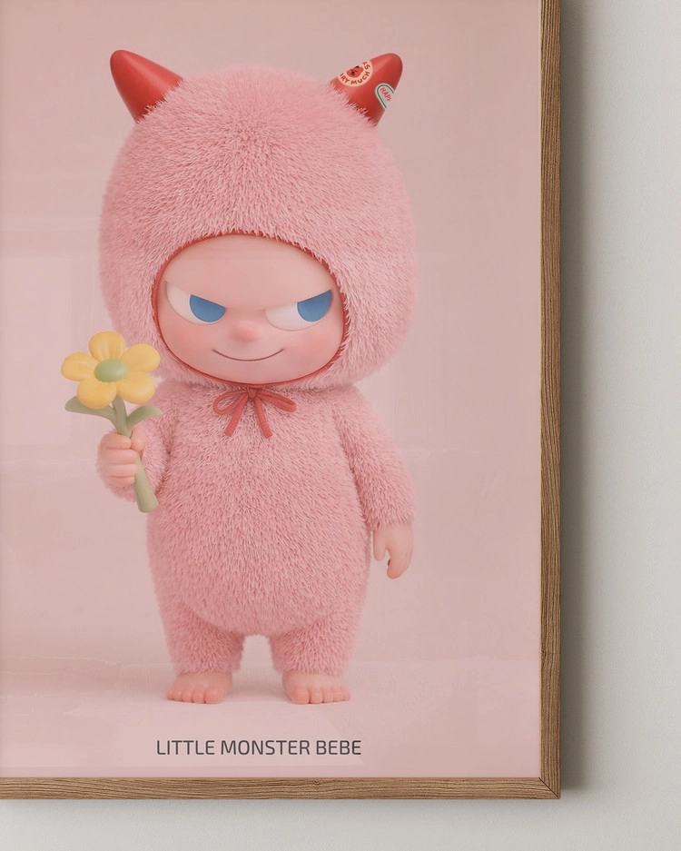 부드러운 질감의 팬더 코스튬을 입은 몬스터 베베의 장난스러운 표정이 시선을 끄는 포스터입니다.